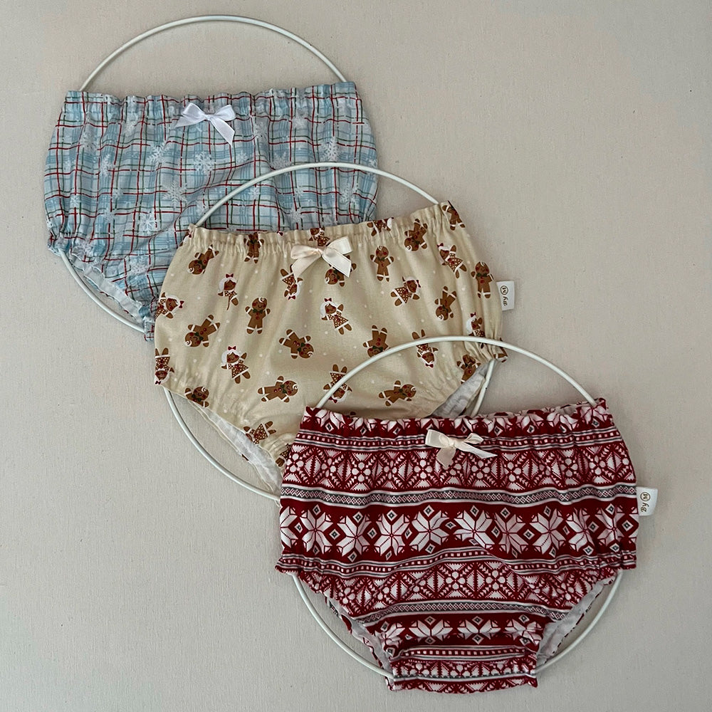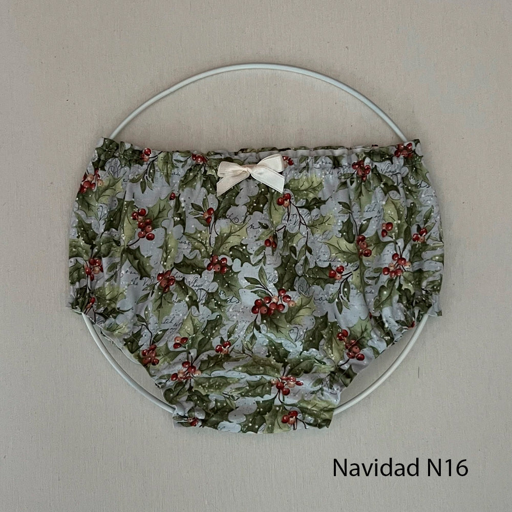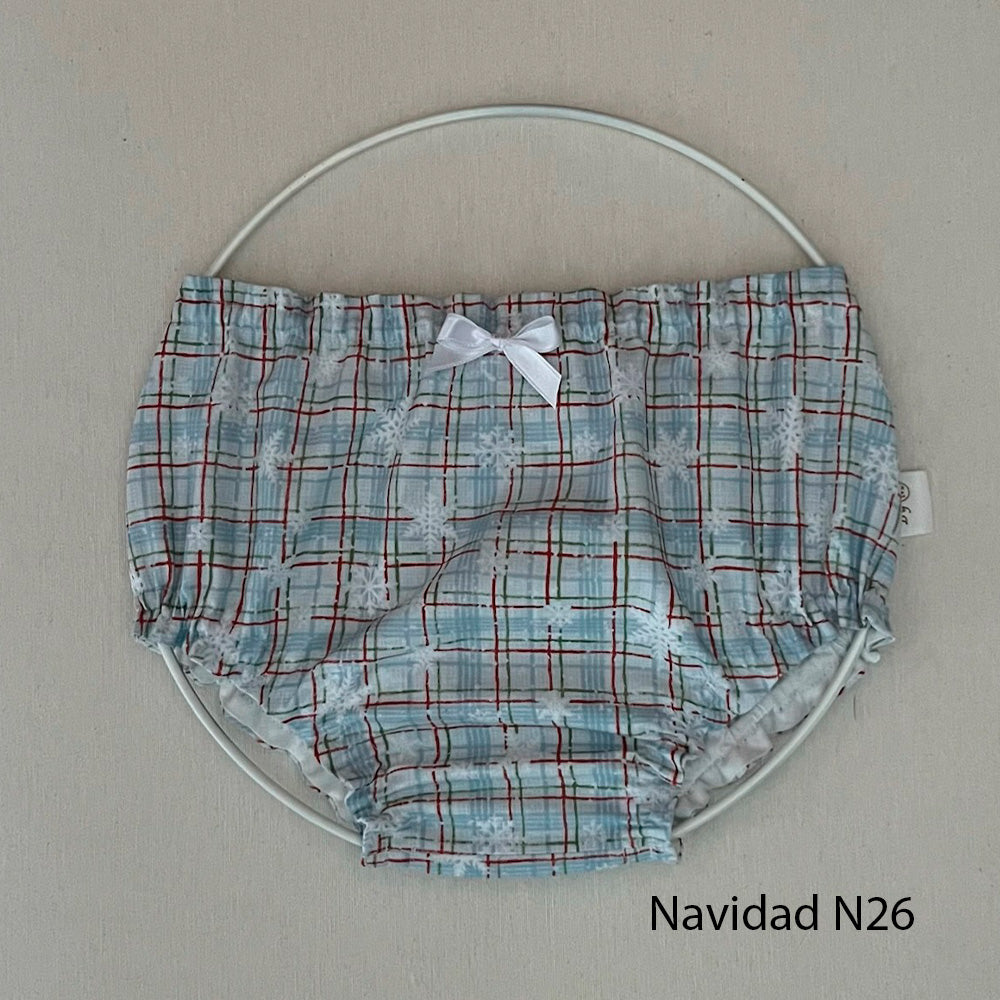 Culotes básicos navideños: prendas esenciales para cualquier bebé con un guiño a la Navidad. Los Culotes, también conocidos como braguitas o cubrepanales , perfectos para usar solos o combinados con vestidos y blusones. Confeccionados con tejidos de alta calidad y forrados en 100% algodón orgánico, son suaves para la piel delicada de tu bebé. Además, ofrecemos la opción de combinarlos con blusa y capota a juego de la misma tela, creando un look completo y coordinado. #Cubrepañales #AlgodónOrgánico #RopaBebé