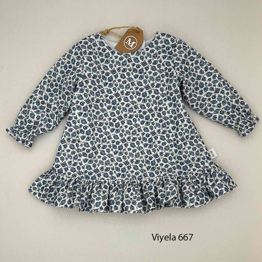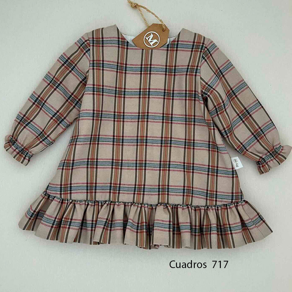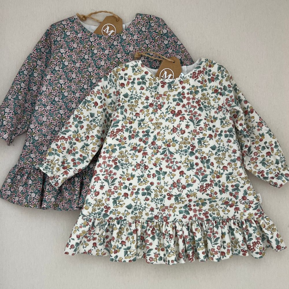 "Elegancia Sutil para los Más Pequeños: Descubre nuestro vestido de manga larga, meticulosamente diseñado con gomas en los puños para un ajuste impecable, cuello a la caja para un toque distintivo y un delicado volante en el bajo que aporta movimiento y gracia. La doble fila de botones en la espalda no sólo es un detalle estético, sino que también asegura un ajuste perfecto adaptándose a las medidas de tu bebé. Para un conjunto armonioso, puedes complementar el vestido con un culote a juego, confeccionado en la misma tela premium. Cada pieza está forrada con algodón orgánico 100%, garantizando suavidad y calidad en cada momento."