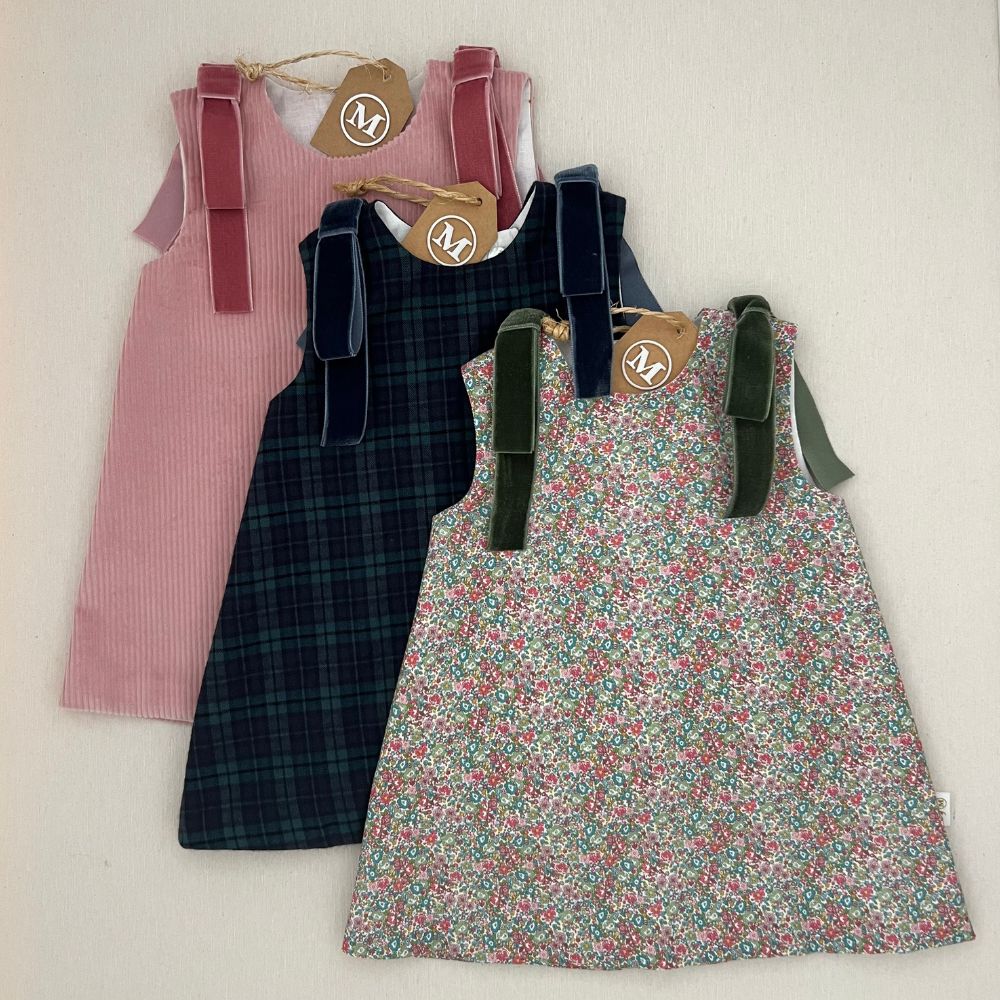 Encanto Clásico con un Toque Personal: Nuestro vestido, con su cuello a la caja y manga sisa, se destaca por sus lazos en los hombros, que puedes seleccionar a tu gusto. Ideal para llevar con una camisa debajo, otorgando versatilidad y estilo en cualquier estación. El cierre posterior con doble fila de botones no solo aporta un detalle visual, sino que garantiza un ajuste adaptado a las medidas de tu bebé. Confeccionado con los tejidos más finos y forrado con algodón orgánico 100% para asegurar confort en cada uso. Opta por un look completo combinándolo con un culote a juego. Elegancia y calidad en cada hilo.